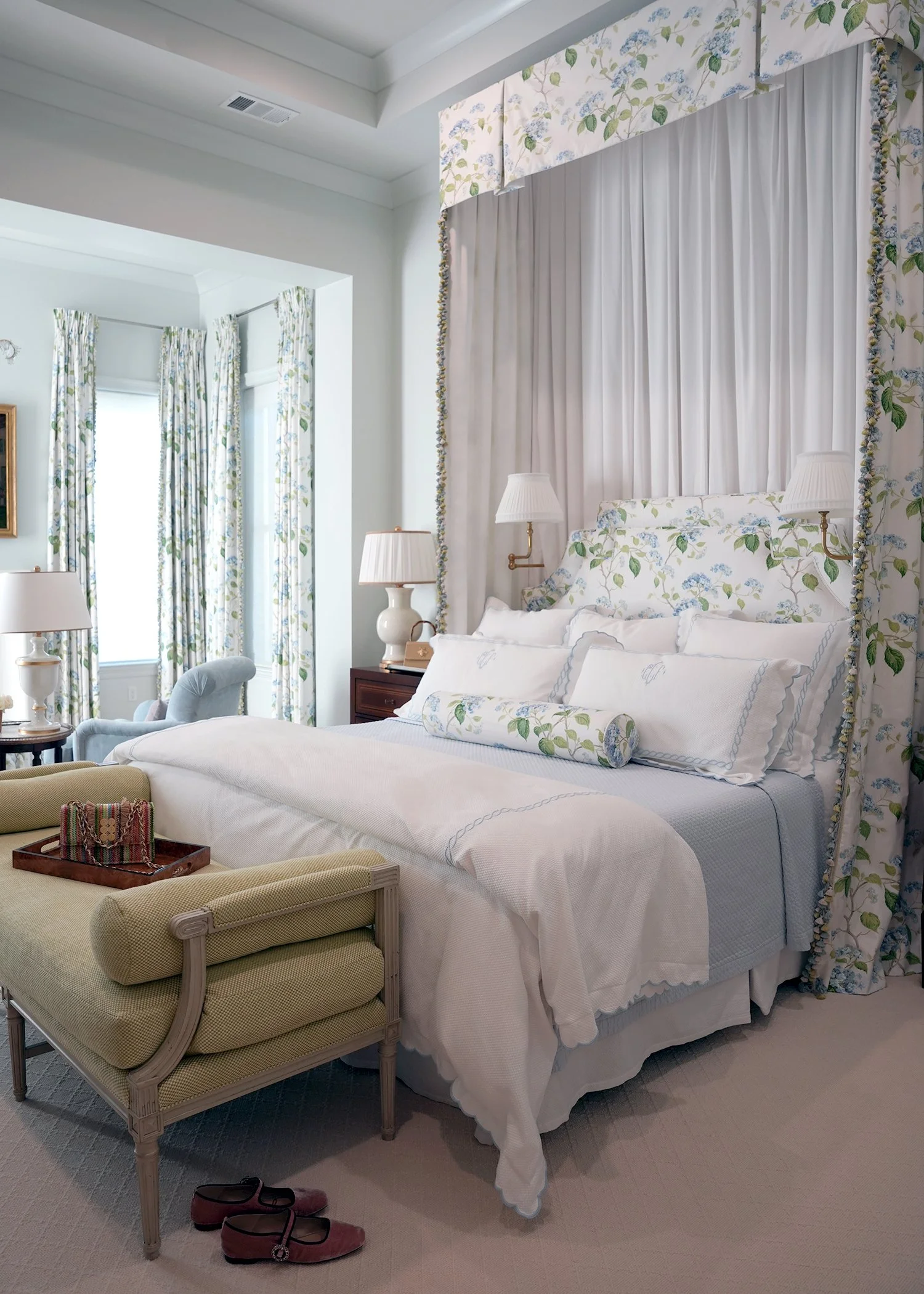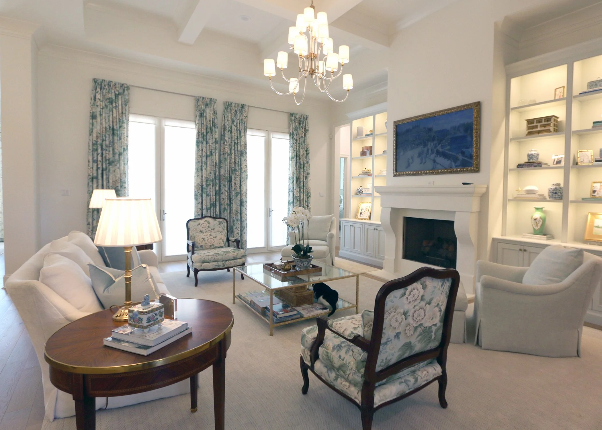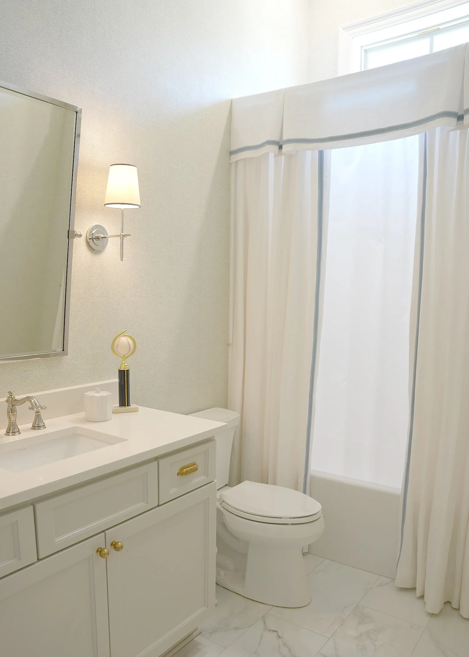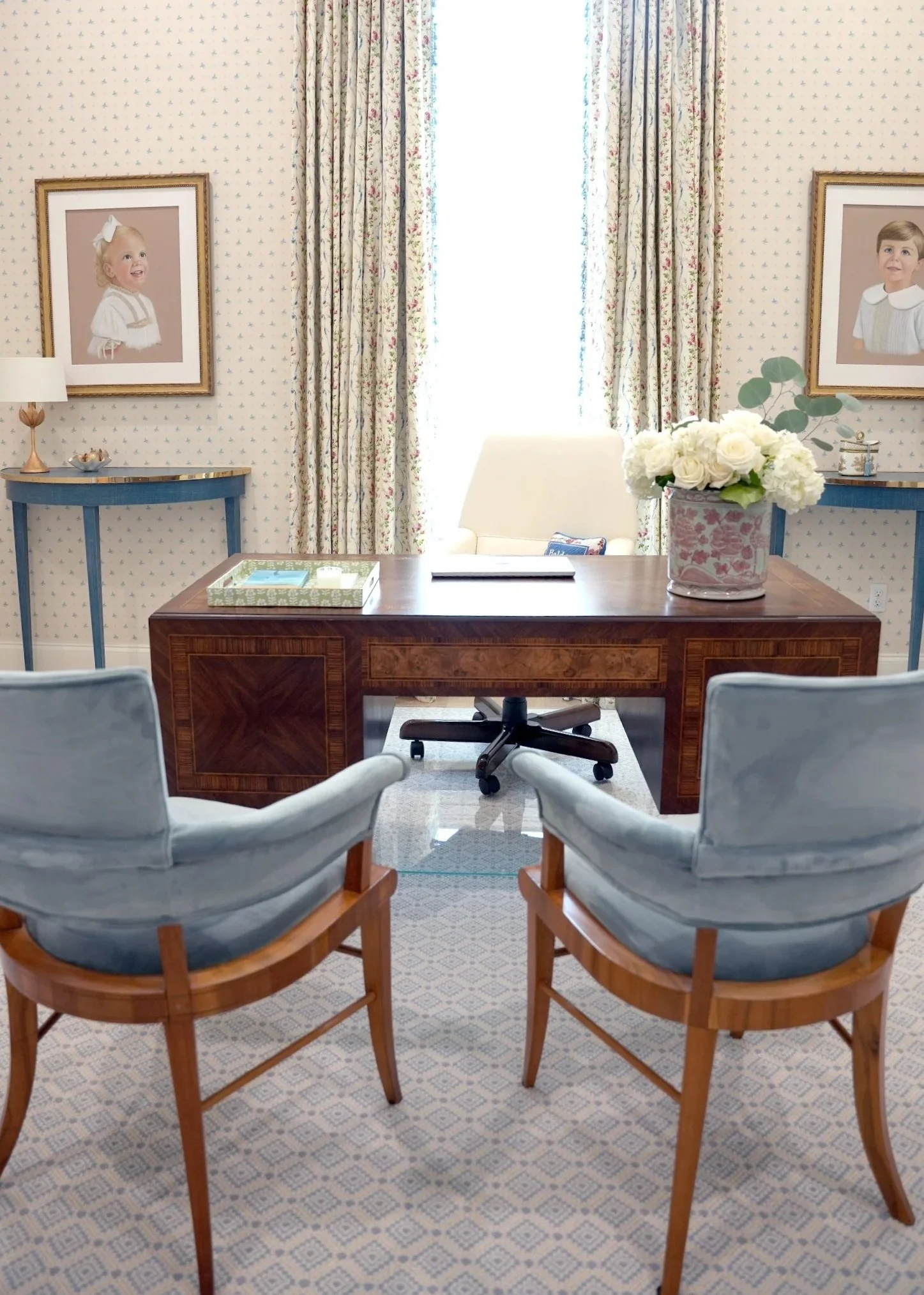 Project Description: Antique pieces mixed with warm fabrics and fixtures combine to create this comfortable yet luxurious space for our clients growing family.